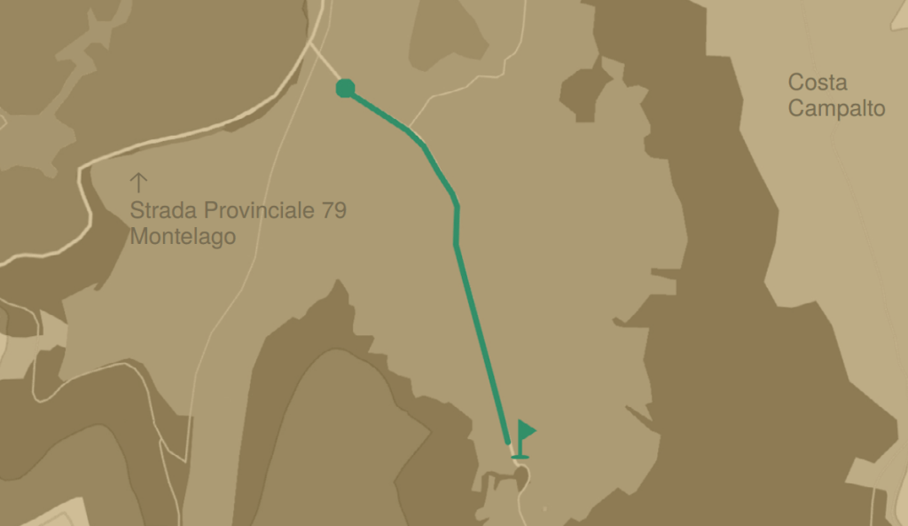 Caratteristiche: dopo forti piogge il fondo potrebbe essere irregolare e sconnesso; il percorso è assolato per i primi due terzi ma non va dimenticato che ci si trova ad oltre 900 metri di altitudine.