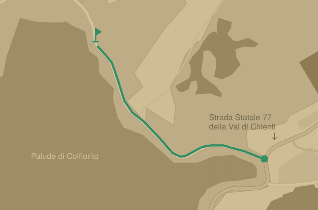 Uscita Colfiorito SS 77var Val di Chienti in direzione Colfiorito e poi per 600 metri in direzione Foligno.