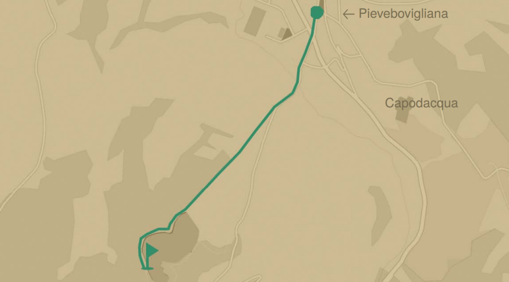 Dalla statale 77 var uscita Muccia prendere per l’abitato di Pievebovigliana.